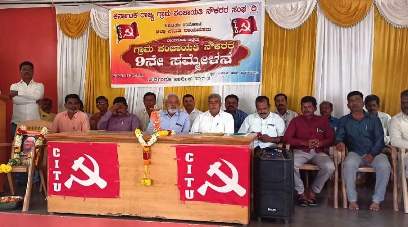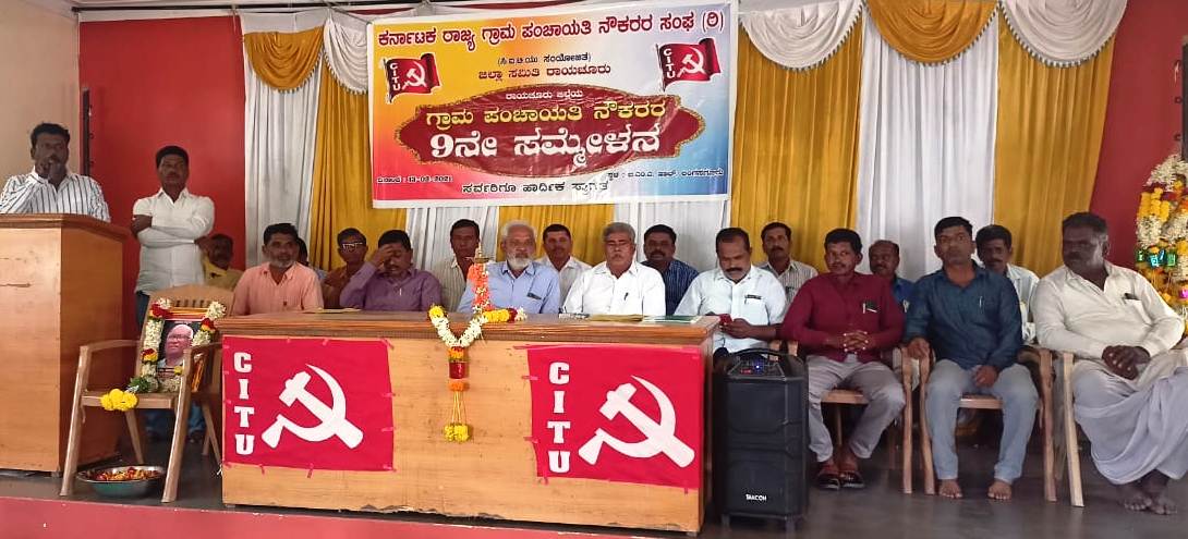 ಲಿಂಗಸುಗೂರು : ಸಿಐಟಿಯು ಸಂಯೋಜಿತ ಕರ್ನಾಟಕ ರಾಜ್ಯ ಗ್ರಾಮ ಪಂಚಾಯತ್ ನೌಕರರ ಸಂಘ ಜಿಲ್ಲಾ ಘಟಕದ ವತಿಯಿಂದ ಸ್ಥಳೀಯ ಭಾರತೀಯ ವೈದ್ಯಕೀಯ ಸಂಘದ ಸಭಾಂಗಣದಲ್ಲಿ ರಾಯಚೂರು ಜಿಲ್ಲಾ ಮಟ್ಟದ 9ನೇ ಸಮ್ಮೇಳನವನ್ನು ಆಯೋಜಿಸಲಾಗಿತ್ತು.