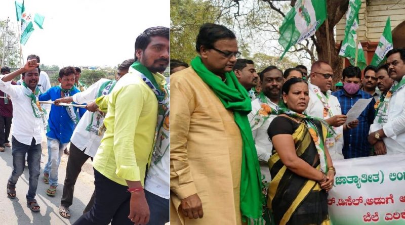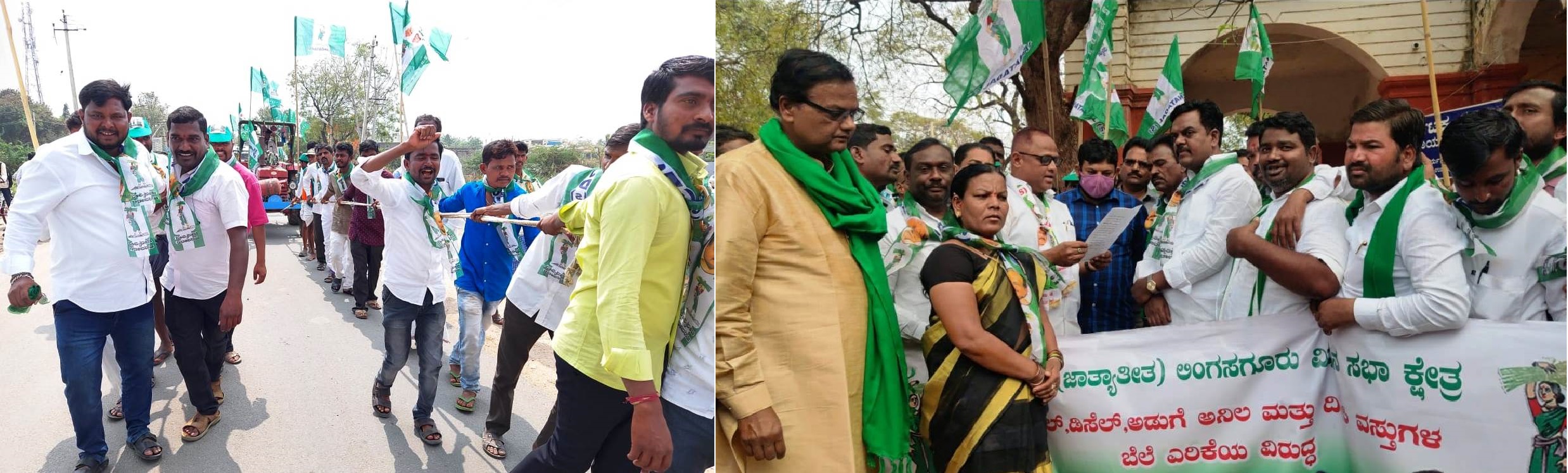 ಲಿಂಗಸುಗೂರು : ಬೆಲೆ ಏರಿಕೆ ಖಂಡಿಸಿ ಜೆಡಿಎಸ್ ಪ್ರತಿಭಟನಾ ರ್ಯಾಲಿ
