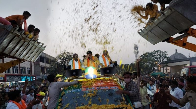 ವಿಜಯೇಂದ್ರರಿಗೆ ಭವ್ಯಸ್ವಾಗತ : ಜೆಸಿಬಿಗಳಿಂದ ಪುಷ್ಪಾಭಿಷೇಕ