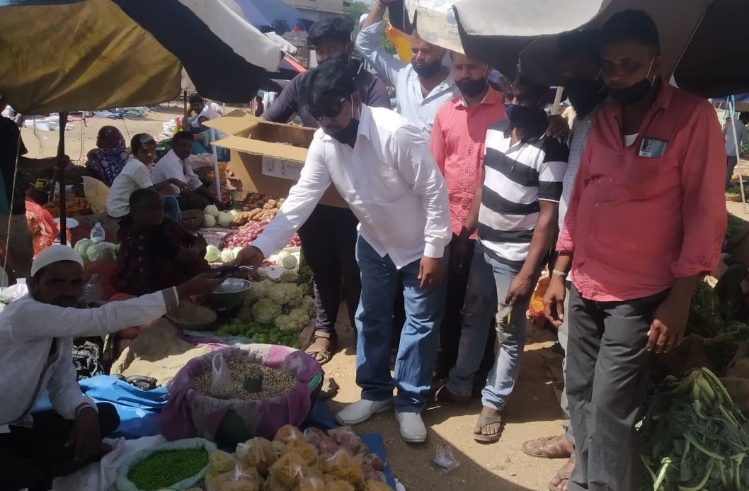 ಲಿಂಗಸುಗೂರು : ಬೀದಿಬದಿ ವ್ಯಾಪಾರಿಗಳಿಗೆ ಮಾಸ್ಕ್ ವಿತರಣೆ