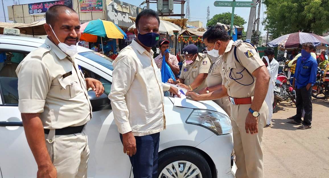 ದ್ವಿಚಕ್ರ ವಾಹನಗಳಲ್ಲಿ ಮಾಸ್ಕ್ ಇಲ್ಲದೇ ಓಡಾಡುತ್ತಿರುವವರಿಂದ 100 ರೂಪಾಯಿ ದಂಡ ವಸೂಲಿ ಮಾಡಲಾಯಿತು. ನೂರಾರು ಜನ ಆದೇಶದ ಅರಿವಿಲ್ಲದಂತೆ ರಸ್ತೆಯಲ್ಲಿ ಓಡಾಡುತ್ತಿದ್ದರು. ಬಸ್ಟಾಂಡ್ ಸರ್ಕಲ್ನಲ್ಲಿ ಸಿಬ್ಬಂಧಿಗಳೊಂದಿಗೆ ತೈನಾಗಿದ್ದ ಡಿವೈಎಸ್ಪಿಯವರುವಾಹನ ಸವಾರರಿಂದ ದಂಡ ವಸೂಲಿ ಮಾಡಿ ಕಫ್ರ್ಯೂ ಬಗ್ಗೆ ಅರಿವು