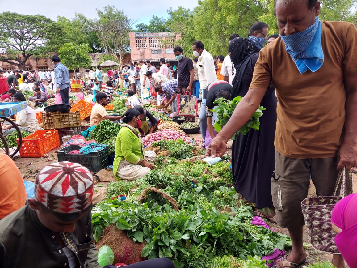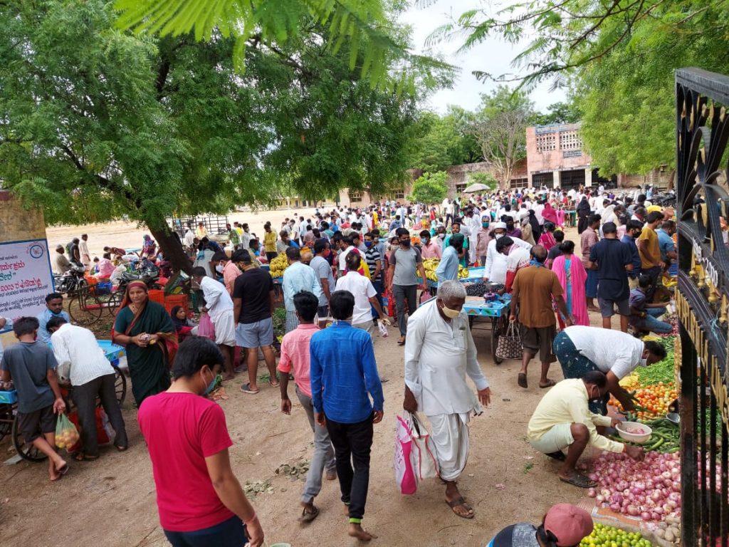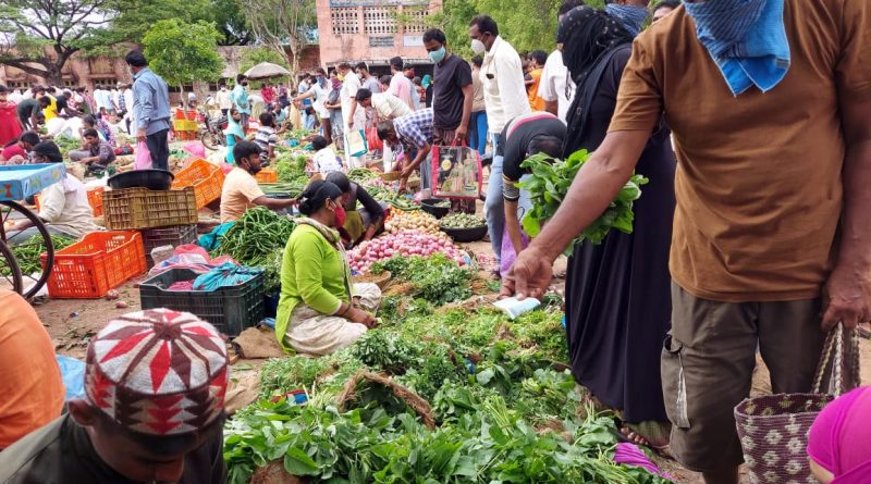 ಲಿಂಗಸುಗೂರು ಪಟ್ಟಣದೆಲ್ಲೆಡೆ ಜನವೋ ಜನ..! ಲಾಕ್ಡೌನ್ ಎಫೆಕ್ಟ್ : ದುಪ್ಪಟ್ಟು ದರಕ್ಕೆ ತರಕಾರಿ, ಸೊಪ್ಪು ಮಾರಾಟ..!