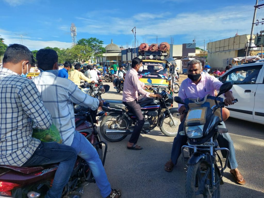 ಬುಧವಾರ ಒಂದು ದಿನ ಮಧ್ಯಾಹ್ನ 12ರ ವರೆಗೆ ಓಪನ್ ನಂತರ ಮೂರು ದಿನ ಮತ್ತೆ ಸಂಪೂರ್ಣ ಲಾಕ್ ಎನ್ನುವ ಜಿಲ್ಲಾಧಿಕಾರಿಗಳು ಹೊರಡಿಸಿದ್ದ ಹಿನ್ನೆಲೆಯಲ್ಲಿ ಸಾರ್ವಜನಿಕರು ಅಗತ್ಯ ವಸ್ತುಗಳನ್ನು ಕೊಳ್ಳಲು ಗುಂಪು ಗುಂಪಾಗಿ ರಸ್ತೆಗಿಳಿದಿದ್ದರು. ಬೈಕ್, ಸ್ಕೂಟರ್, ಕಾರು, ಜೀಪು, ಅಟೋ, ಟಂಟಂ ಸೇರಿ ನೂರಾರು ವಾಹನಗಳು ರಸ್ತೆಗಿಳಿದ ಪರಿಣಾಮ ಪಟ್ಟಣದ ಬಸ್ಟಾಂಡ್ ವೃತ್ತ, ಕಾಲೇಜು ಮೈದಾನದ ಎದುರು, ಅಂಚೇ ಕಚೇರಿ ವೃತ್ತ, ಬಸವಸಾಗರ ವೃತ್ತ, ಬೈಪಾಸ್ ರಸ್ತೆ ಸೇರಿ ಮಾರುಕಟ್ಟೆ ಇರುವ ಪ್ರದೇಶಗಳ ರಸ್ತೆಗಳೆಲ್ಲಾ ಟ್ರಾಫಿಕ್ ಜಾಮ್ ಆಗಿದ್ದವು. ವಾಹನಗಳ ಸಂಚಾರ ದಟ್ಟಣೆ ನಿಯಂತ್ರಣಕ್ಕೆ ತರಲು ಆರಕ್ಷಕರು ಹರಸಾಹಸ ಪಡುವ ದೃಶ್ಯಗಳು ಕಂಡು ಬಂದವು.