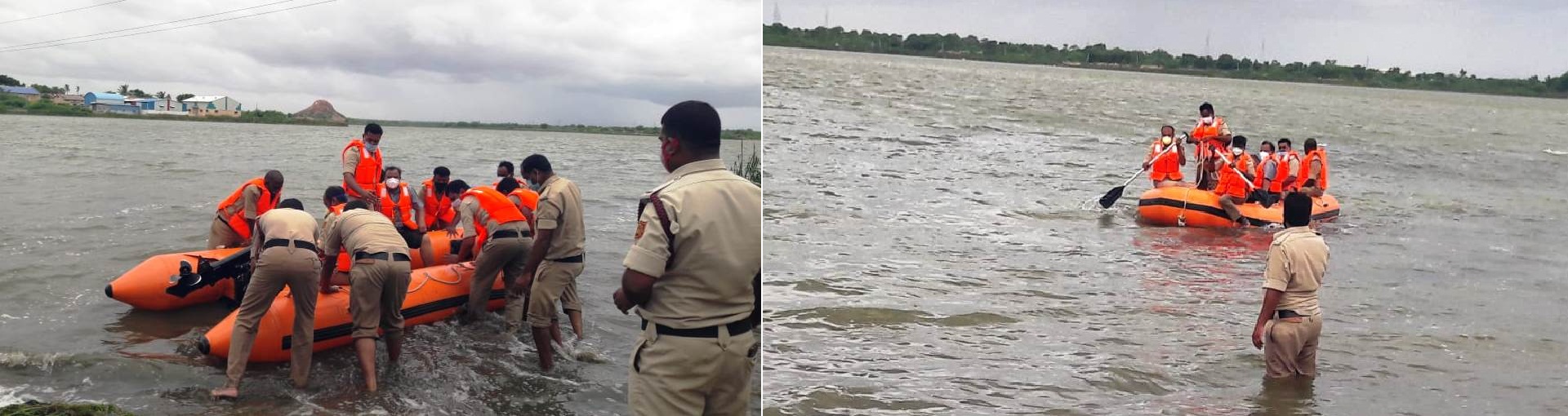 ಪ್ರವಾಹದ ಮುನ್ನೆಚ್ಚರಿಕೆಯಾಗಿ ಕೆರೆಯಲ್ಲಿ ಬೋಟ್ ಪ್ರಾಕ್ಟೀಸ್..!
