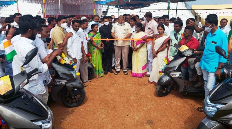 ಕ್ರೀಡಾಂಗಣದಲ್ಲಿ ಶಾಸಕ ಡಿ.ಎಸ್.ಹೂಲಗೇರಿ 23 ತ್ರಿಚಕ್ರ ವಾಹನಗಳನ್ನು ವಿತರಣೆ ಮಾಡಿದರು.