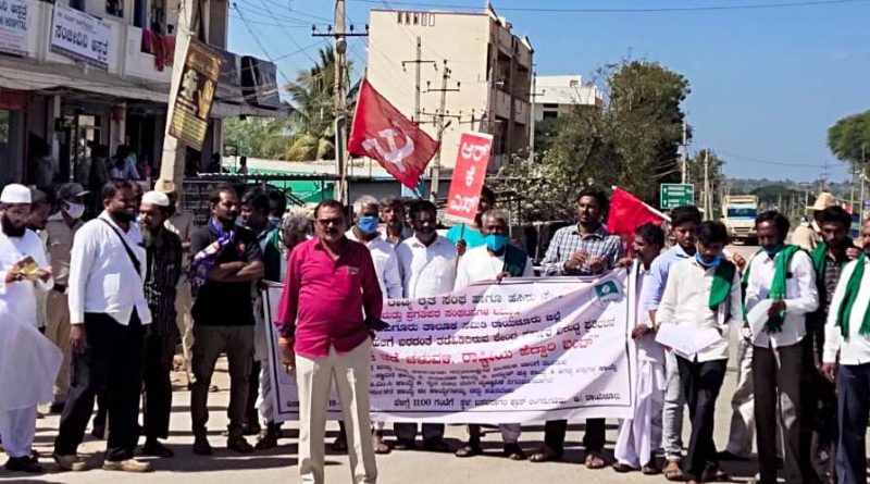 ರೈತರ ವಿರೋಧಿ ಕಾಯ್ದೆಗಳ ಹಿಂಪಡೆಯಲು ಆಗ್ರಹಿಸಿ ಪ್ರತಿಭಟನೆ