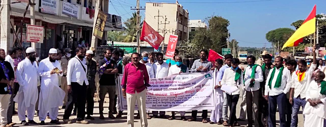 ಸಂವಿಧಾನದ ಆಶಯಗಳಿಗೆ ವಿರುದ್ಧವಾಗಿ ಕರೋನಾದಿಂದ ಉಂಟಾಗಿರುವ ಸಂದಿಗ್ಧ ಪರಿಸ್ಥಿತಿಯ ದುರ್ಲಾಭ ಪಡೆದುಕೊಂಡು, ತರಾತುರಿಯಲ್ಲಿ ಕಾನೂನುಗಳನ್ನು ತಿದ್ದುಪಡಿ ಮಾಡಿ, ದೇಶದ ರೈತರಿಗೆ ಹಾಗೂ ಸಾರ್ವಜನಿಕರಿಗೆ ಸರಕಾರ ಮರಣ ಶಾಸನಗಳನ್ನು ಜಾರಿಗೊಳಿಸಿದೆ. ಕೂಡಲೇ ಕೇಂದ್ರ ಹಾಗೂ ರಾಜ್ಯ ಸರಕಾರಗಳು ಮಾಡಿರುವ ಎಲ್ಲಾ ಕಾಯ್ದೆ ತಿದ್ದುಪಡಿಗಳನ್ನು ವಾಪಸ್ ಪಡೆಯಬೇಕೆಂದು ರೈತರು ಒತ್ತಾಯಿಸಿದರು.