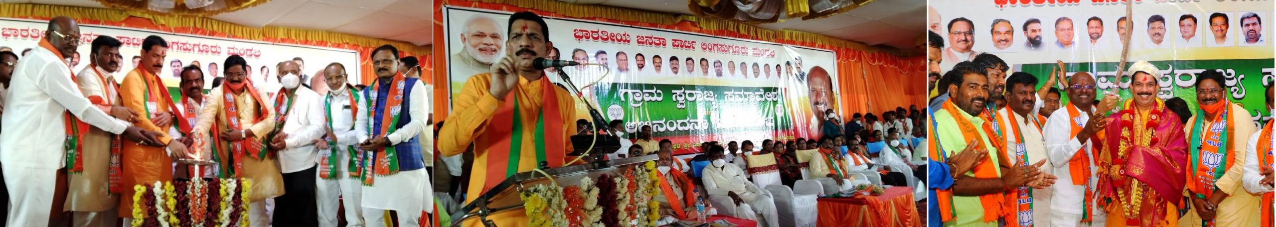ಬಿಜೆಪಿ ರಾಜ್ಯ ಪ್ರಧಾನ ಕಾರ್ಯದರ್ಶಿ ಎನ್.ರವಿಕುಮಾರ್ ಮಾತನಾಡುತ್ತಾ, ಮಹಾತ್ಮ ಗಾಂಧೀಜಿಯವರ ಗ್ರಾಮ ಸ್ವರಾಜ್ಯ ಕನಸು ನಮ್ಮದಾಗಿದ್ದರೆ, ಕಾಂಗ್ರೆಸ್ನವರದ್ದು ಮಾತ್ರ ಗಾಂಧಿ ಕುಟುಂಬದವರ ಸ್ವರಾಜ್ಯವಾಗಿದೆ. ಗ್ರಾಮಗಳ ಅಭಿವೃದ್ಧಿಯಿಂದ ದೇಶದ ಅಭಿವೃದ್ಧಿಯಾಗಲಿದೆ. ಬಿಜೆಪಿ ಪಕ್ಷವು ಗ್ರಾಮಗಳ ಮತ್ತು ರೈತರ ಸುಧಾರಣೆಯ ಬಗ್ಗೆ ಸಂಕಲ್ಪ ಮಾಡಿದೆ. ಆದ್ದರಿಂದ ಗ್ರಾಮ ಪಂಚಾಯತಿ ಚುನಾವಣೆಯಲ್ಲಿ ಬಿಜೆಪಿ ಬೆಂಬಲಿತ ಅಭ್ಯರ್ಥಿಗಳನ್ನು ಹೆಚ್ಚಿನ ಸಂಖ್ಯೆಯಲ್ಲಿ ಗೆಲ್ಲಿಸಿ ಎಂದರು.