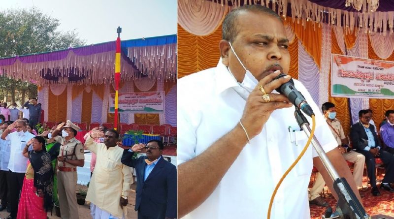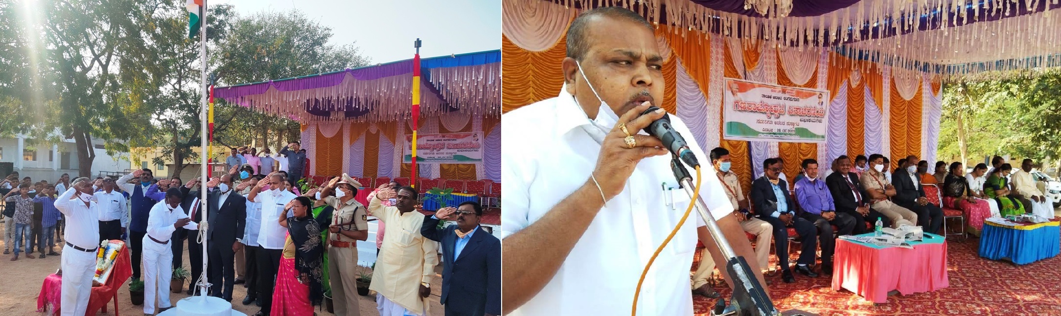 ಸ್ಥಳೀಯ ಸರಕಾರಿ ಜ್ಯೂನಿಯರ್ ಕಾಲೇಜು ಮೈದಾನದಲ್ಲಿ ತಾಲೂಕು ಆಡಳಿತದ ವತಿಯಿಂದ ಆಯೋಜಿಸಿದ್ದ ಗಣರಾಜ್ಯೋತ್ಸವ ದಿನಾಚರಣೆ ಸಮಾರಂಭದಲ್ಲಿ ಪಾಲ್ಗೊಂಡು ಮಾತನಾಡಿದ ಅವರು, ಡಾ.ಅಂಬೇಡ್ಕರ್ರು ರಚಿಸಿದ ಸಂವಿಧಾನ ಜಗತ್ತಿಗೇ ಮಾದರಿಯಾಗಿದೆ. ಜಾತ್ಯಾತೀತ ನೆಲೆಗಟ್ಟಿನಲ್ಲಿ ದೇಶದ ಐಕ್ಯತೆ ಮತ್ತು ಅಭಿವೃದ್ಧಿಗಾಗಿ ಮುಂದಾಗುವ ಹೊಣೆ ಯುವ ಪೀಳಿಗೆ ಮೇಲಿದೆ. ದೇಶ ಗಣತಂತ್ರವಾಗಲು ನಮ್ಮ ಹಿರಿಯರು ಪಟ್ಟ ಶ್ರಮ ಹಾಗೂ ದೇಶಕ್ಕಾಗಿ ಸಲ್ಲಿಸಿದ ನಿಸ್ವಾರ್ಥ ಸೇವೆಗಳ ಕುರಿತು ಮೆಲುಕು ಹಾಕಿದವರು ಅವರ ಮಾರ್ಗದರ್ಶನದಲ್ಲಿ ನಾವು ನಡೆಯಬೇಕು ಎಂದರು.